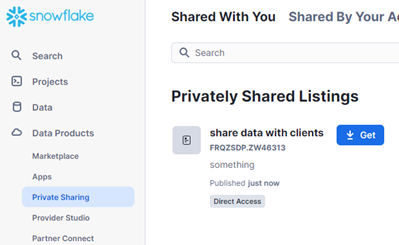 • Go to “Data Products” > “Private Sharing”