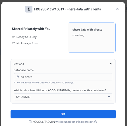• Optional: change the database name and/or role and click the "Get" button